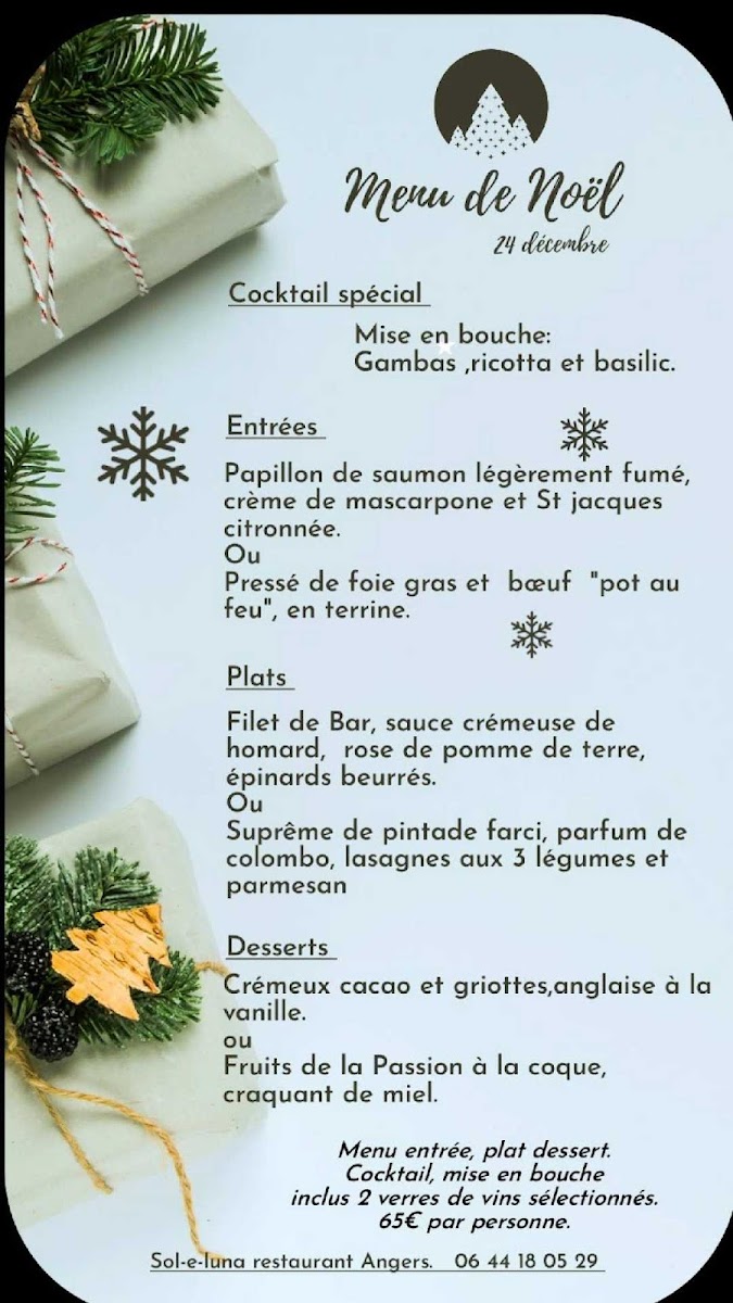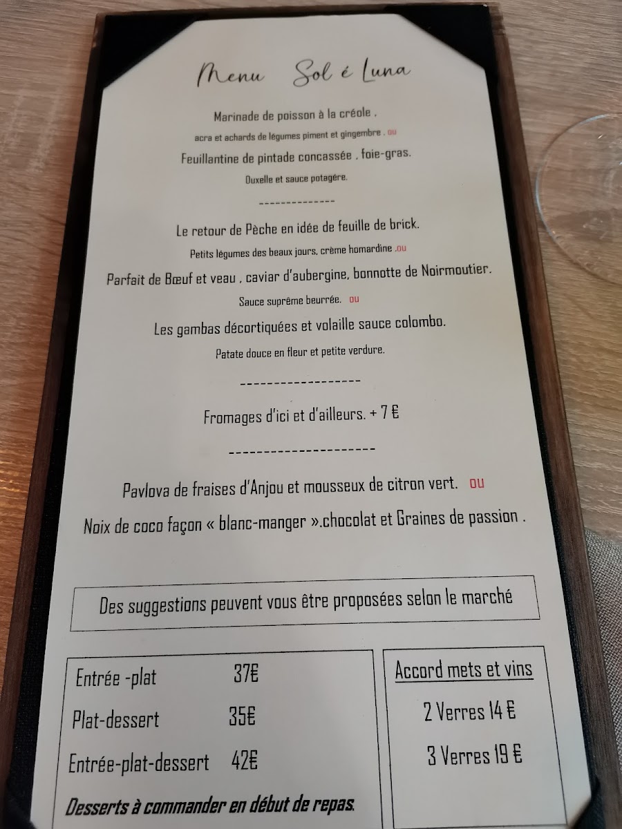 Wrapping up, Sol E Luna (14 Bd Robert, 49100 Angers, France) keeps its menu structure refreshingly clear and easy to navigate-especially if you’re choosing between a quick lunch and a more leisurely evening meal. At midday, Le marché du midi feels like the restaurant’s practical, good-value backbone, built around two straightforward options: Formule plat du jour for those who want something fast and seasonal, and Formule du midi for diners looking for a slightly more complete lunch experience. Then, as the day shifts into dinner service, La carte du soir takes over, giving the menu a more “sit down and enjoy” identity. Overall, the way these three pillars are laid out makes the experience feel organized and intentional: a focused lunch offering designed for efficiency, and an evening menu that suggests more choice and a slower pace-exactly the kind of balance you hope for in a well-run neighborhood restaurant.